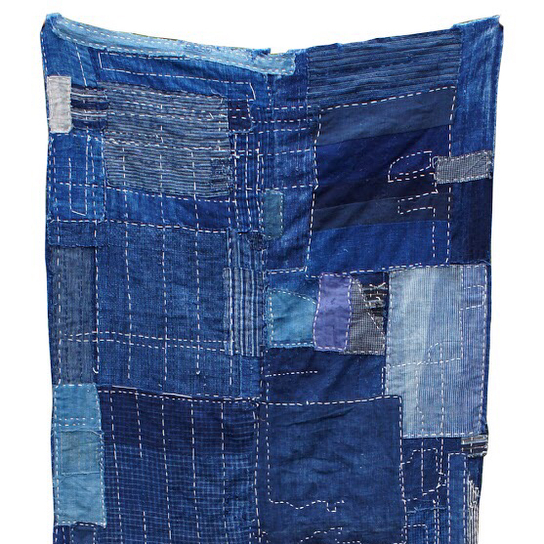 Kieko had a theme of Japanese Indigo Blue for this piece. Enjoy the vintage Indigo blue and the matching Boro pieces gathering… into one beautiful piece of Boro.