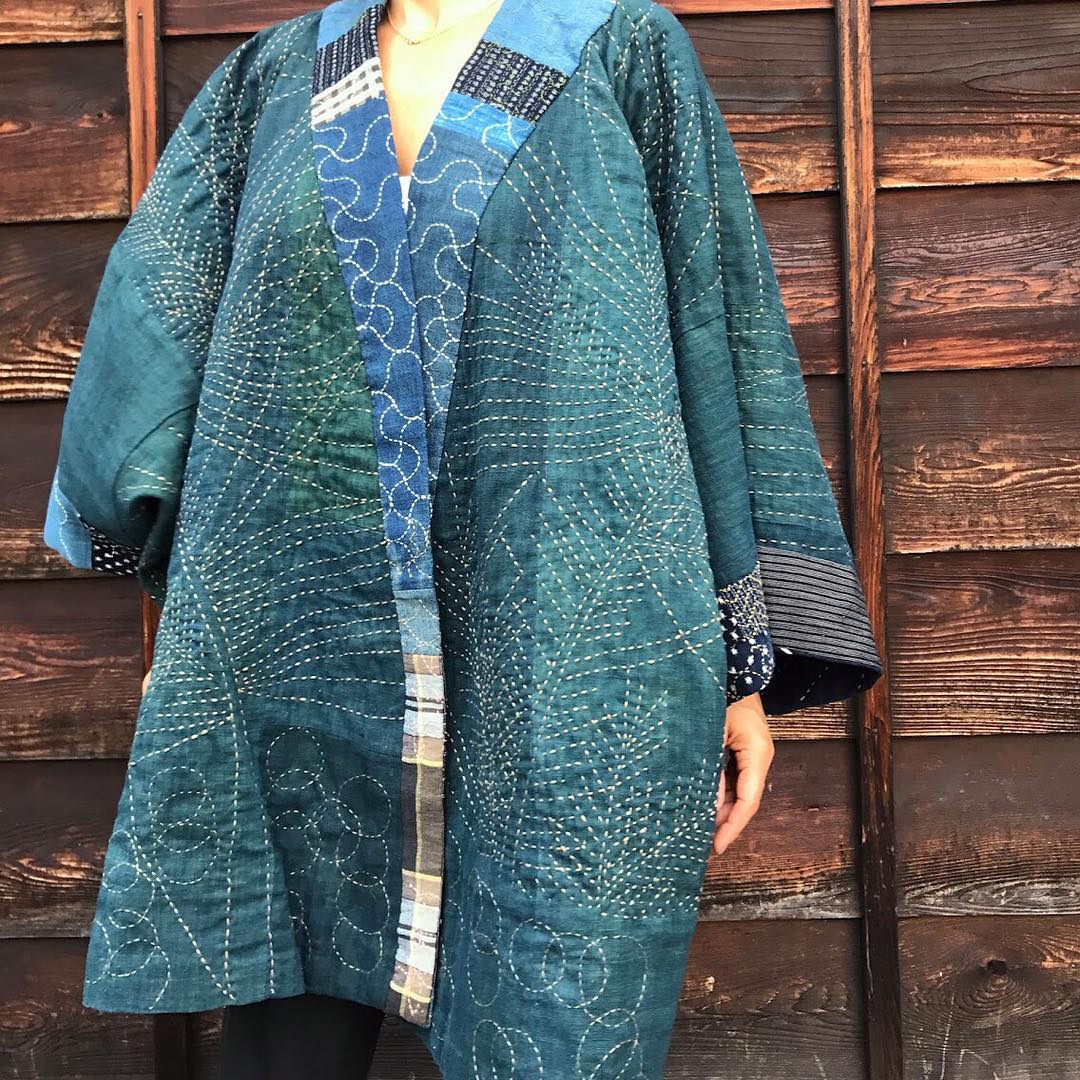 先日ご紹介したジャケットの「双子作品」。同じ数種類の古布から生まれた作品です。恵子さんも、刺し子から少し離れた時期がありました。その時に手にして、そのまま引き出しにしまっておけなかった布です。「もう一度、世に出してやるからな」。恵子さんの刺し子の原点であり、私達の根本的な願いです。「何度も舞台に立てる」「丁寧に作られたものに、不要なものなんてない」そんなメッセージを感じて頂ける作品となっていれば嬉しいです。