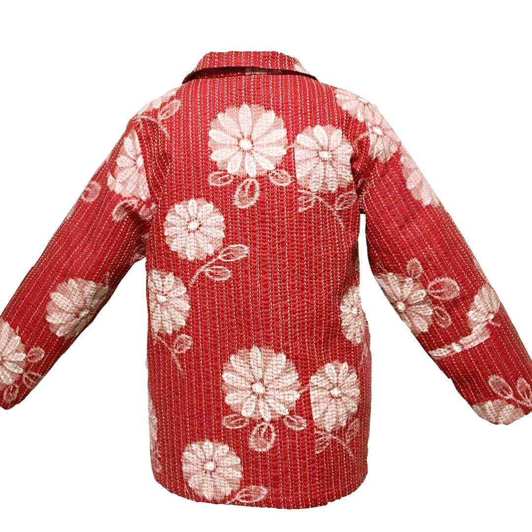 刺し子をしていると、やっぱり頻繁に目に入ってくるのは藍染や泥染めといった、藍かったりグレーだったりという、濃い色が中心なのですが、時に華やかな古布に出会えるときもあります。「古布を服として蘇らせること」がSashiCoの願いです。