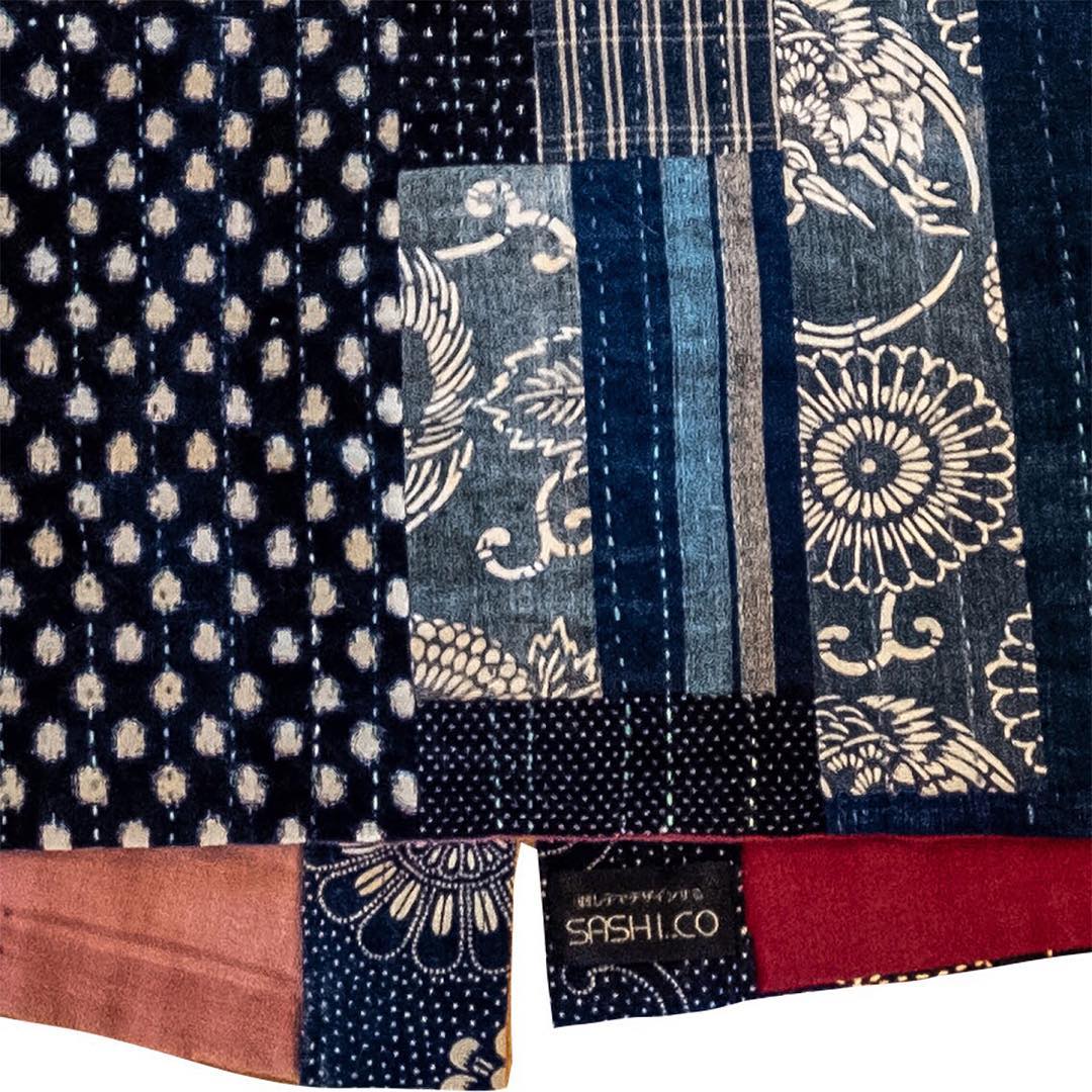 Preparing some photos for the workshops in NYC on this Saturday for what “Sashiko” can do. We sometimes receive the feedback that they are a bit “Intimidated (probably too much Sashiko?)” by our jacket reference/sample. However, besides the skill of patchworking and tailoring as the Jacket, the core part of the Jacket, “Sashiko” is with very basic stitching. Asanoha, Shippou, and some drawing-ish patterns with vintage fabrics. Since we don’t use any special skill or equipment, we believe anyone can make something similar. Of course, it is up to the tailoring and patchwork skill and sense of “Art” after all. It takes a long time and a lot of work, but it is “possible” for you to make something similar. I hope we can continue sharing some inspiring photos. Again, Sashiko is not about making a perfect ONE stitch. It is about moving the stitches to repurpose (or add value to) the fabric.