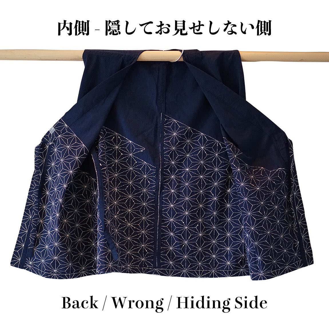 To answer the question above, we “don’t have to” make the back side neat as the front side. So, no “should”. However, I hope they will try to learn how to make both sides beautiful. Then, they “can” choose what is the best. Saying “no” simply due to lack of the skill can repaint the culture. The photos show examples of a workman Jacket with a single layer fabric. You can tell which side is back because of the hems, but both sides are considered as “finished” (They wouldn’t show off the inside on purpose, though, like I do now for the educational purpose). In Sashiko, due to its “ordinary”, there are reasons & stories for why. There is nothing wrong with covering the backside after Sashiko. However, it is painful to see someone redefining due to a lack of practice. Again, Sashiko isn’t difficult, but not shallow.